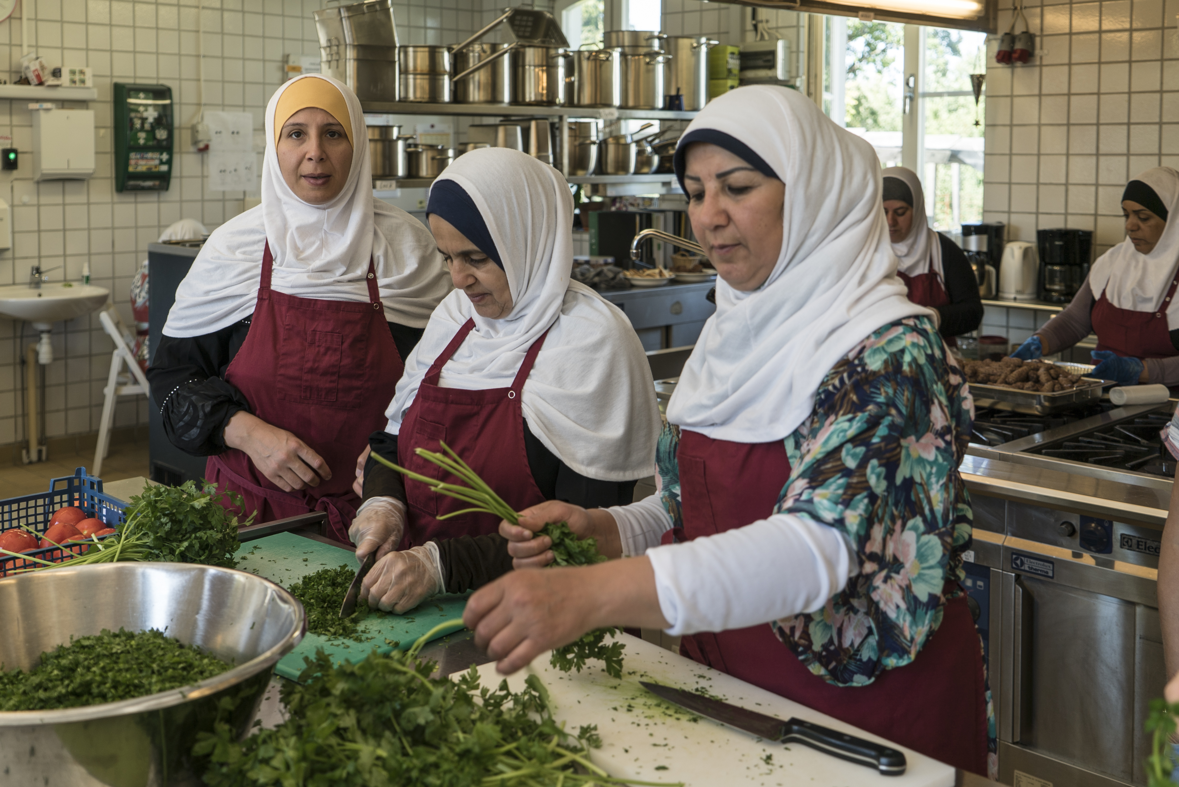 Mit Unterstützung der Gemeinde haben die Flüchtlingsfrauen ein Restaurant eröffnet. Jeden mittag kochen sie in einem der Plattenbauten orientalische Spezialitäten. Anwohner und vor allem Menschen, die im Viertel arbeiten, bekommen so für 70 Kronen ein leckeres preisgünstiges Mittagessen. Ein paar Häuser weiter hat das von Stadt und Europäischem Sozialfonds geförderte Projekt Yallatrappan (arabisch „Yallah“, etwa „vorwärts mit Gottes Wille“ und schwedisch „Treppe“) außerdem eine Großküche eingerichtet, in der geflüchtete Frauen für einen sozialen Cateringbetrieb kochen. Bezahlt werden sie nach Tarif. Jede Zweite findet im Laufe der Zeit dank dieser Erfahrung einen Job in einem örtlichen Unternehmen.